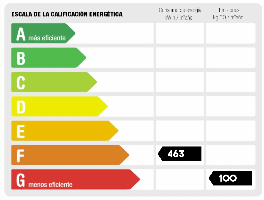 - Consumo de energía (kwh/m2 año): 463.